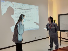 活動中,兩兩分為一組,一人陳述總書記在二十大開幕式上的重要講話和共青團建團100周年大會上的重要講話中的金句,另外一個人戴著耳機看著對面那個人的口型去描述,現(xiàn)場氣氛歡快熱烈。