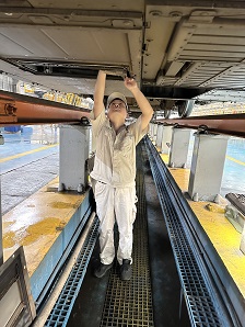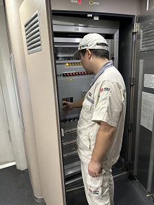 駐太原地鐵售后服務(wù)人員呂江斌對電氣設(shè)備進(jìn)行檢查,檢修庫內(nèi)悶熱的環(huán)境也不能阻擋對高品質(zhì)服務(wù)的追求,一次次被汗水打濕的衣服,都是確保列車無故障運營的見證。