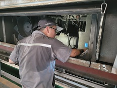 駐青島售后服務(wù)人員李文龍對空調(diào)機組送風(fēng)機變壓器保護(hù)罩粘貼的溫度貼溫度值進(jìn)行全數(shù)普查,并對空調(diào)機組進(jìn)行點檢工作,對換氣裝置進(jìn)行震動測量,對空調(diào)機組、牽引變流器、換氣裝置發(fā)生的故障立即進(jìn)行處置,確保問題不過夜,產(chǎn)品安全穩(wěn)定運行。